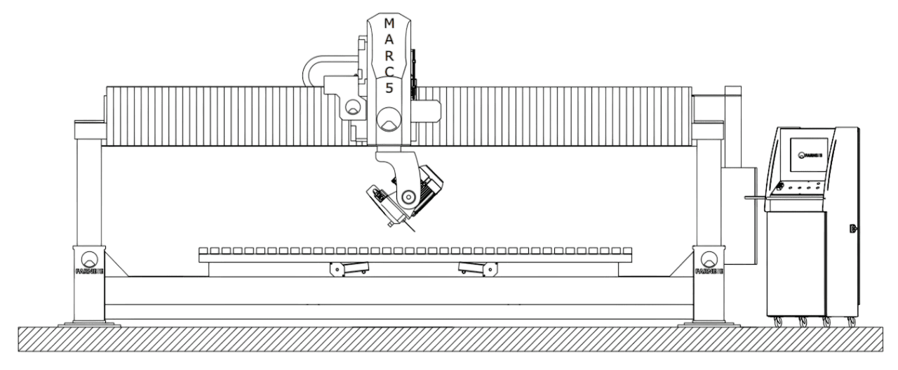 The MARC5 from Farnese stands proudly at the entry to the world of fully CNC controlled 5 axis bridge saws. It couples the onboard CNC controller with easy to use software, making this one of the most versatile, user friendly machines on the market, a real trademark of the Farnese brand.